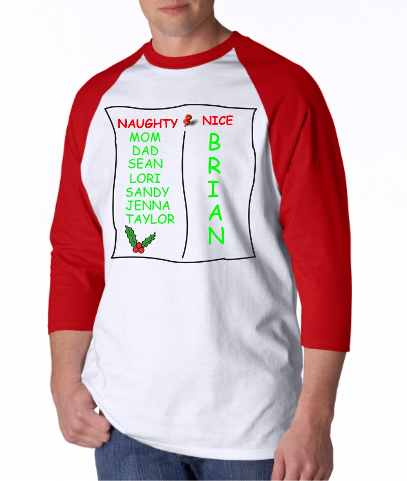 Pick the shirt for your Naughty and Nice List then customize with your own names!